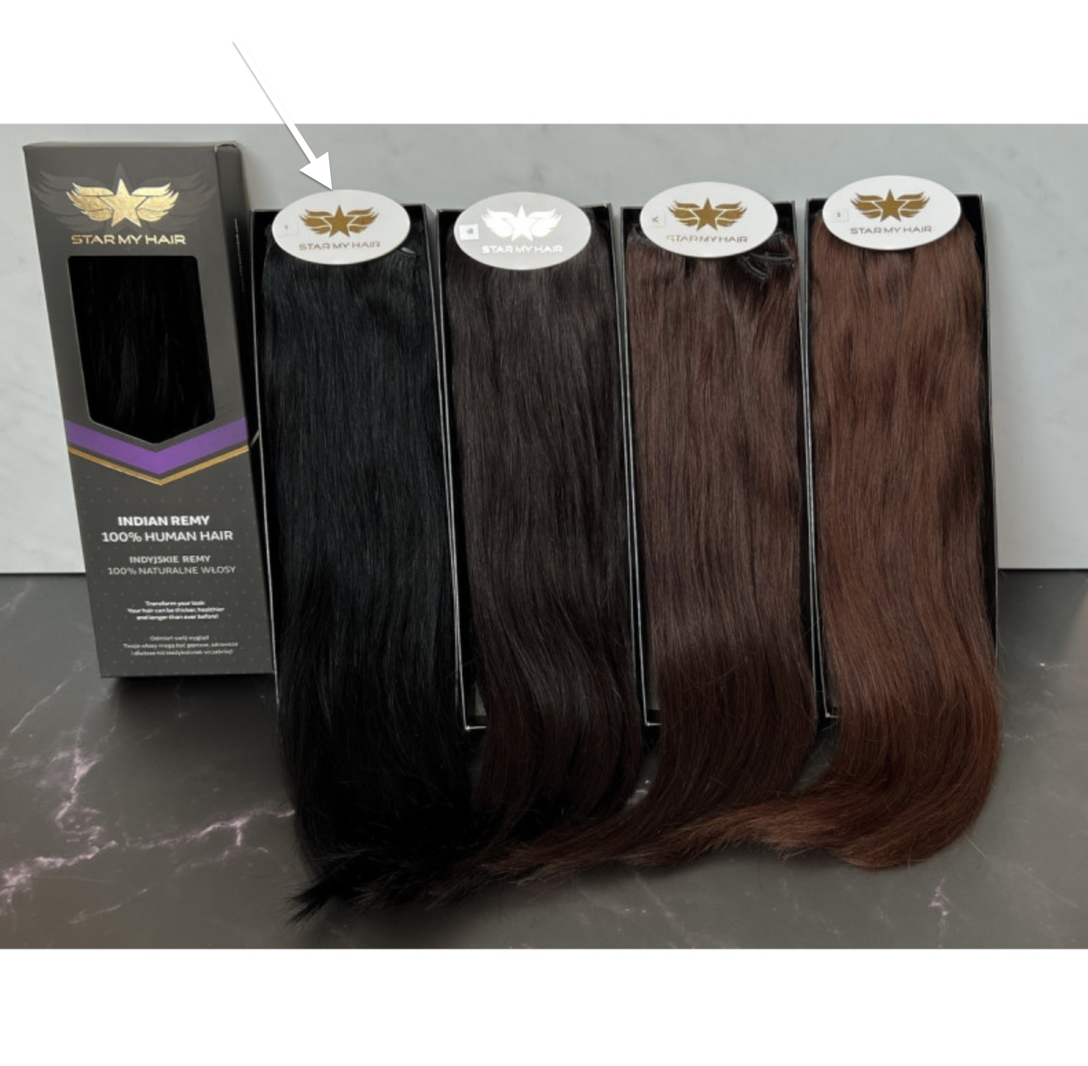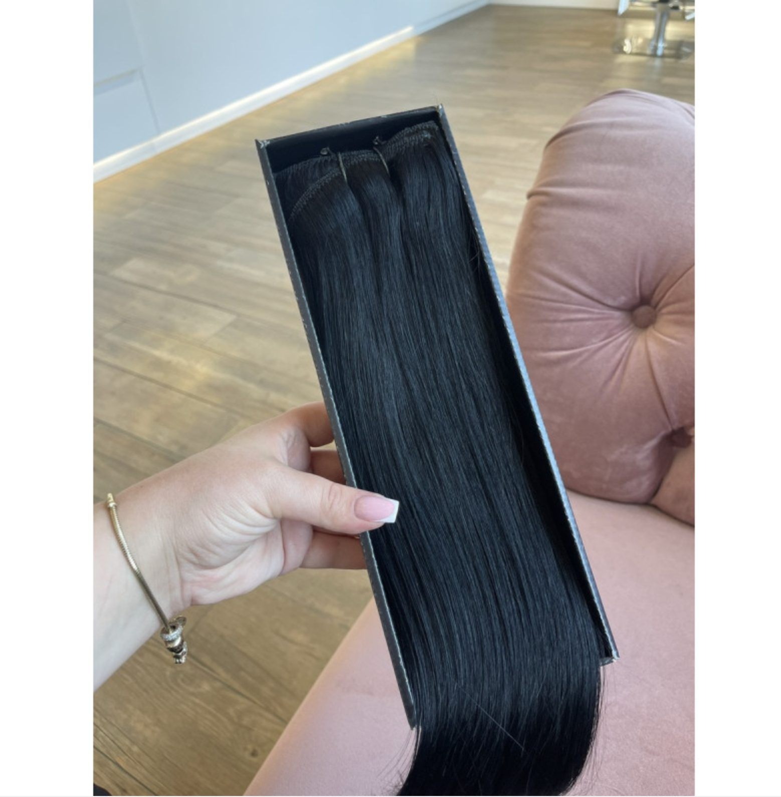 Natūralūs prisegami plaukų tresai juodos spalvos, 1 nr.