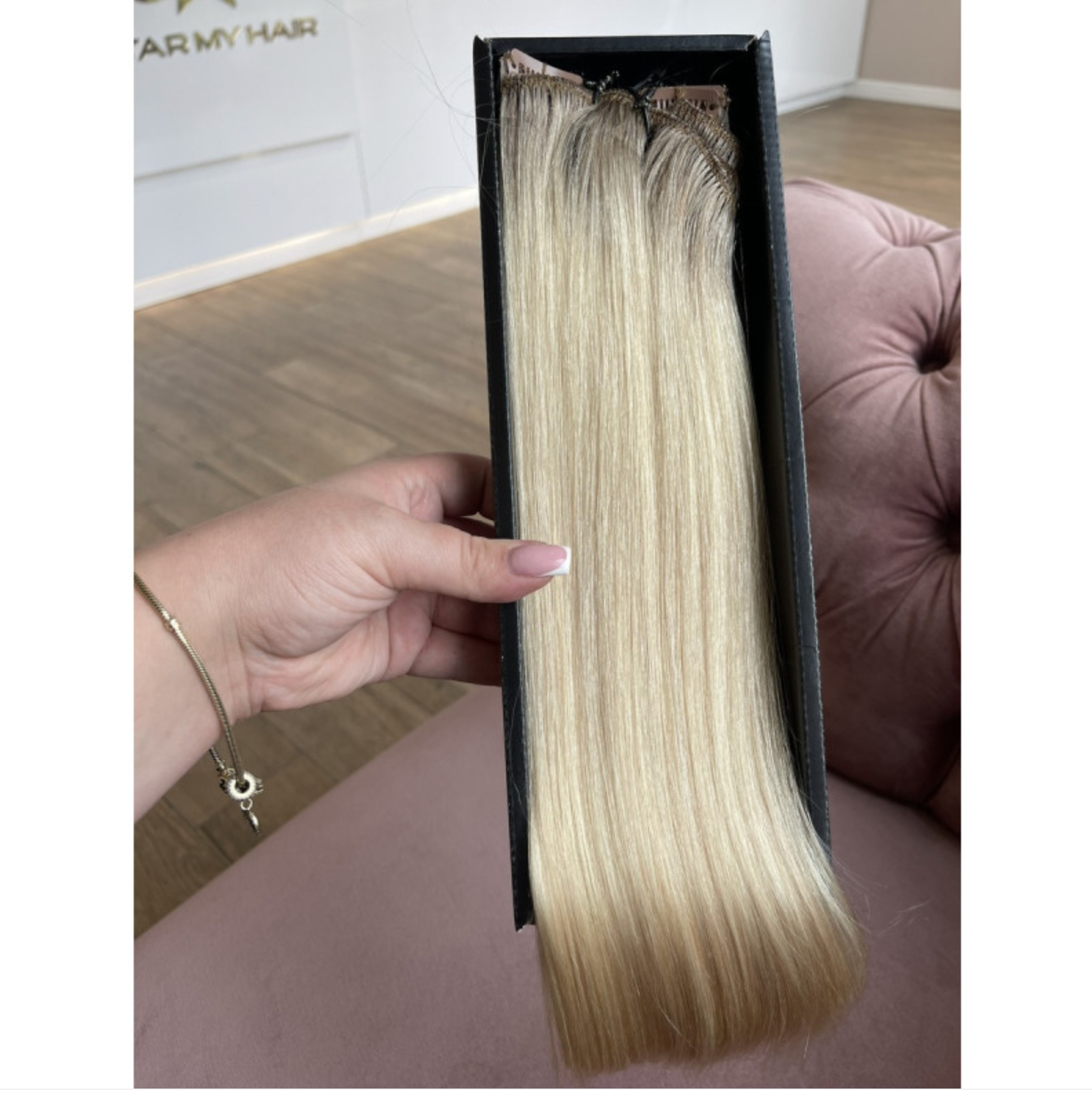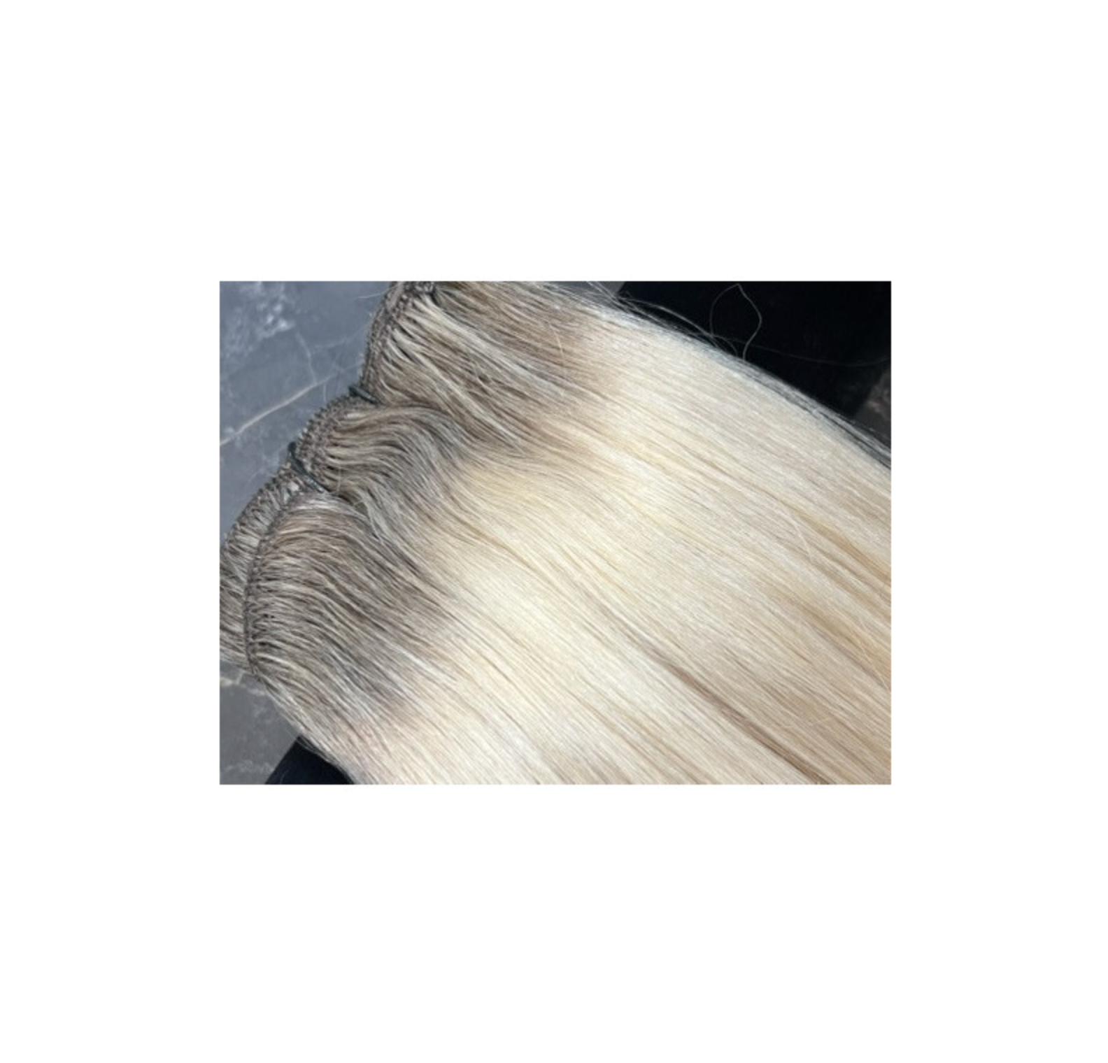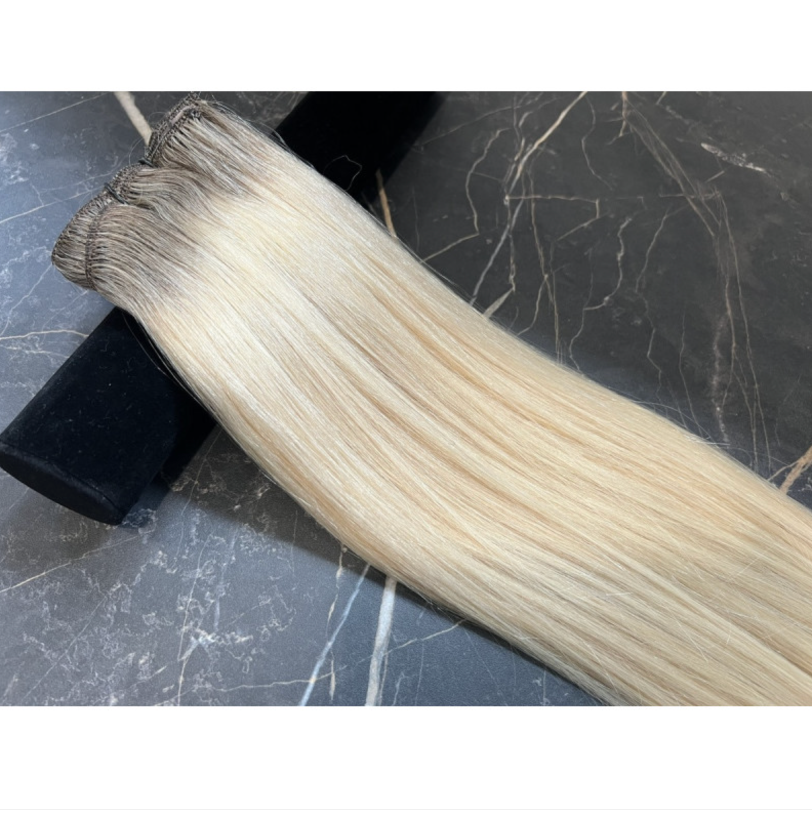 Natūralūs prisegami plaukų tresai balto atspalvio su tamsesnėmis šaknimis (Air Touch perėjimas), SR 60 nr.