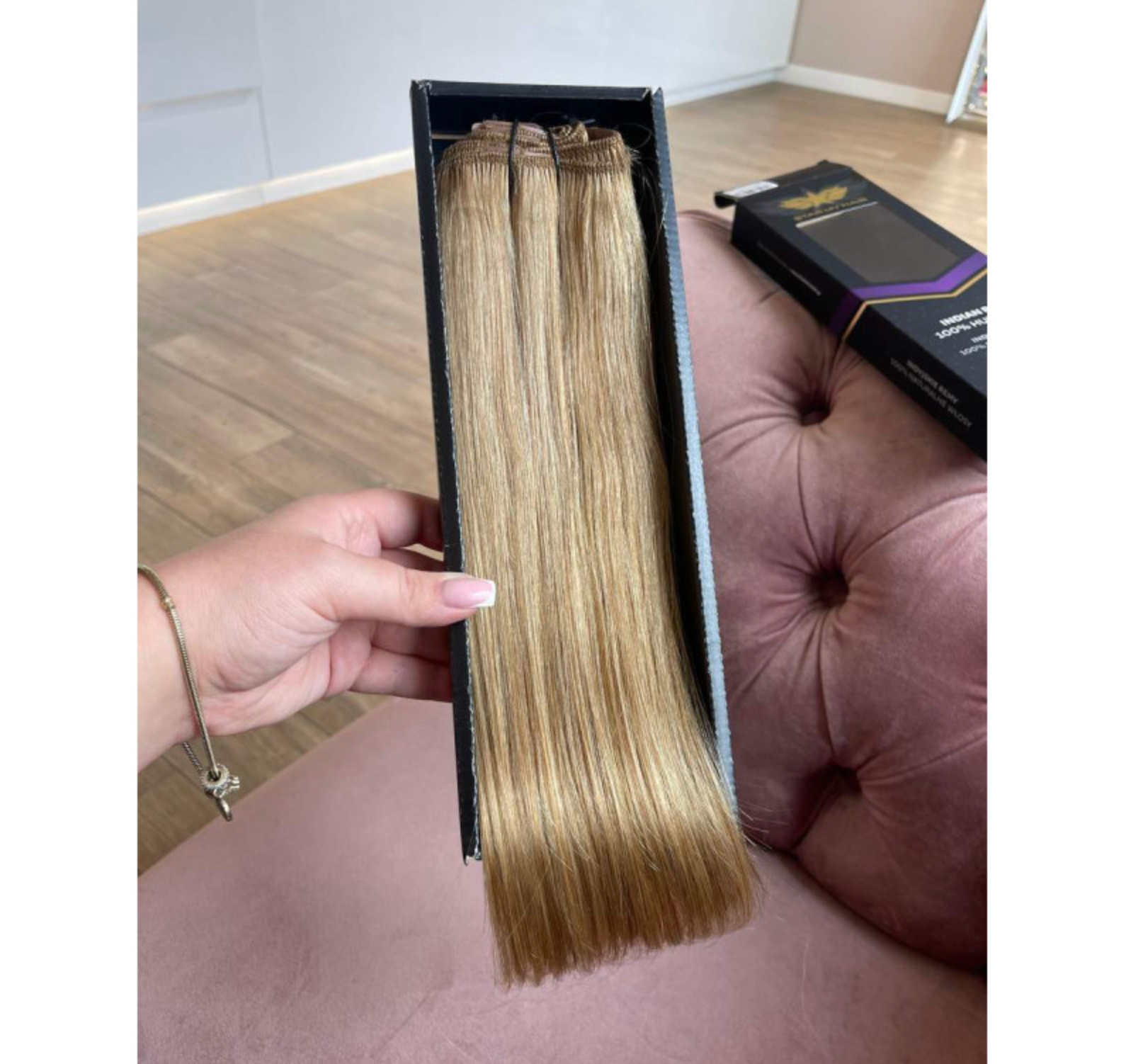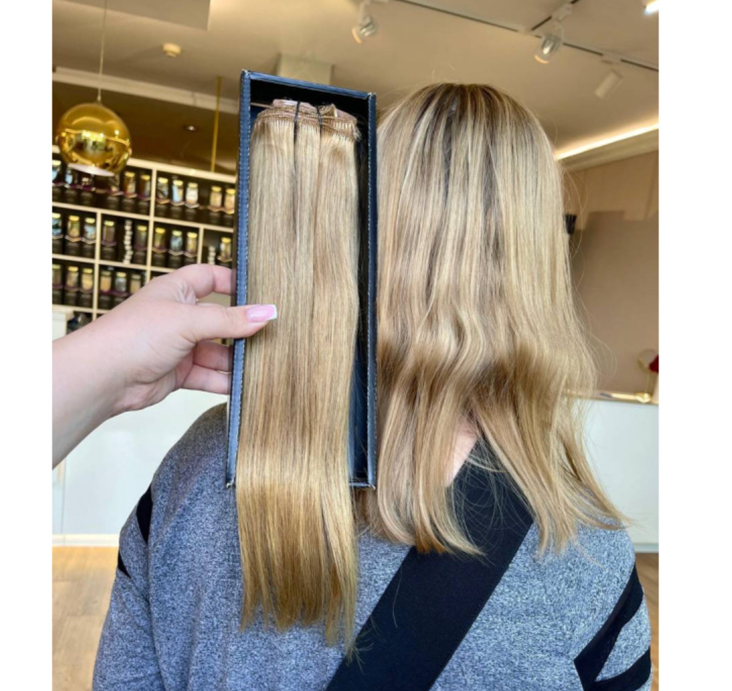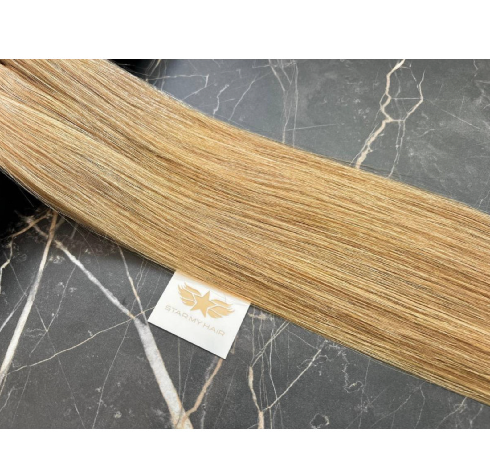Natūralūs prisegami plaukų tresai karamelinės šviesios spalvos, 16 nr.