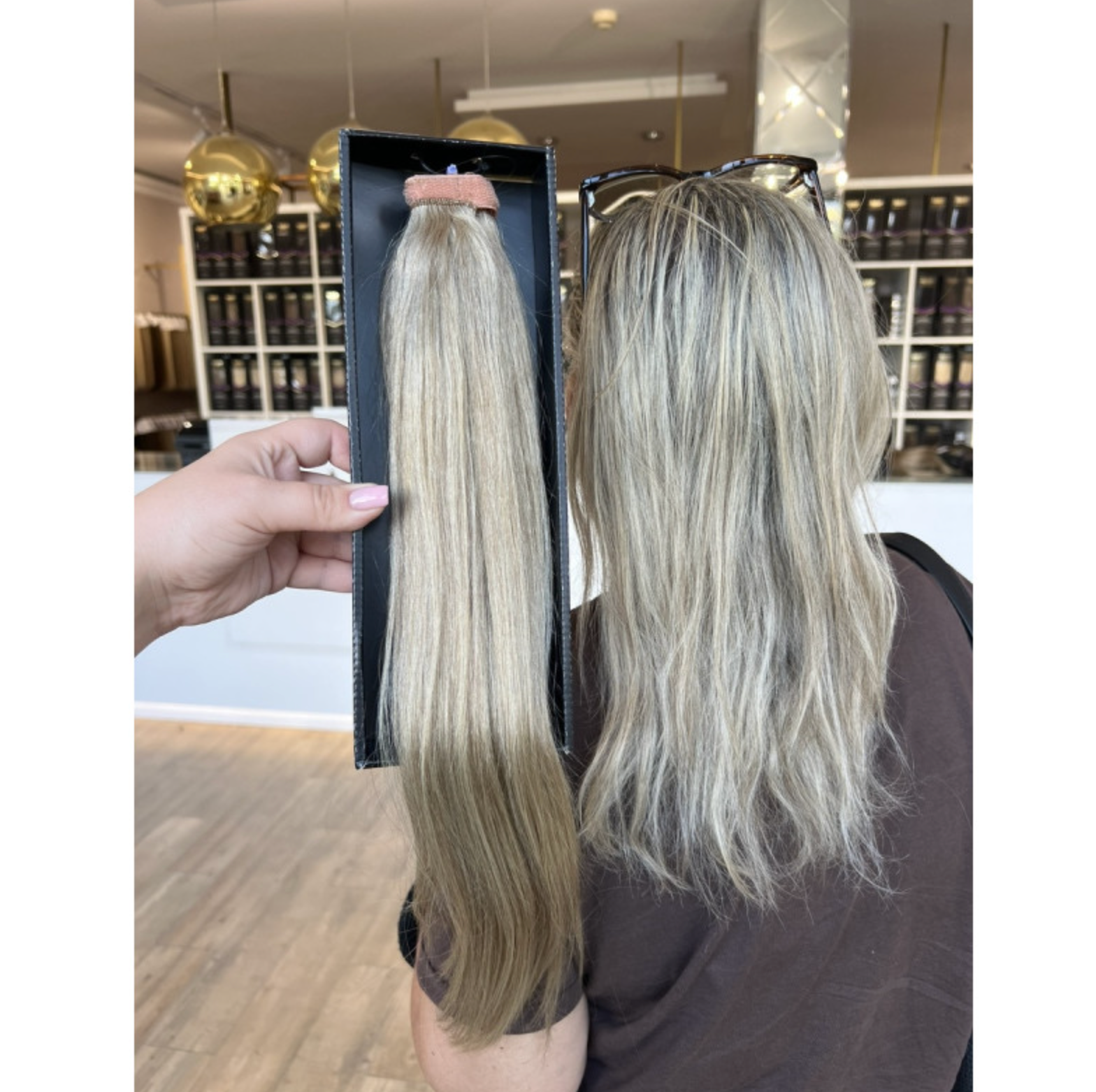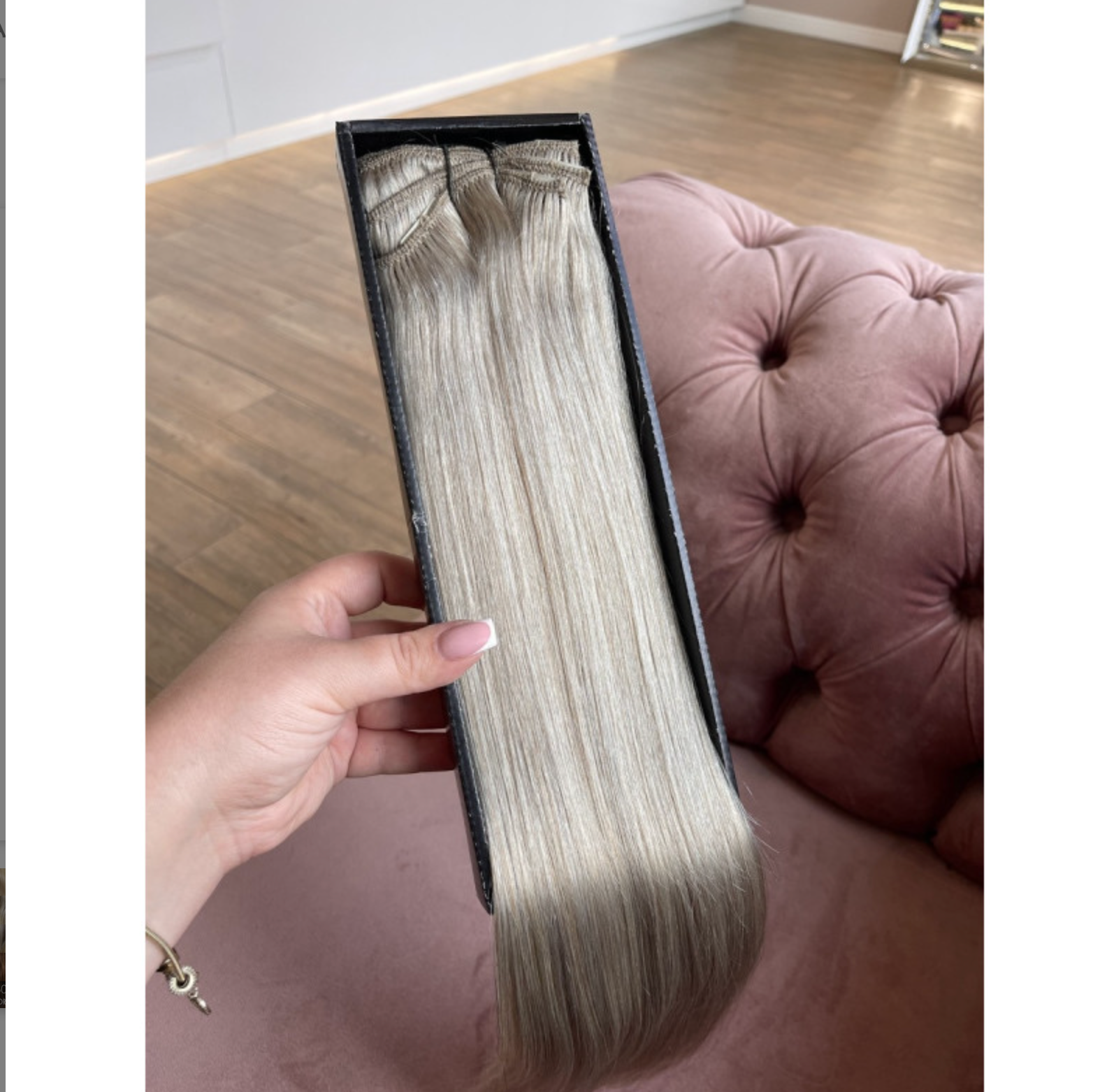 Natūralūs prisegami plaukų tresai šaltai šviesios blondinės atspalvio su šviesiomis sruogelėmis, Air Platinum