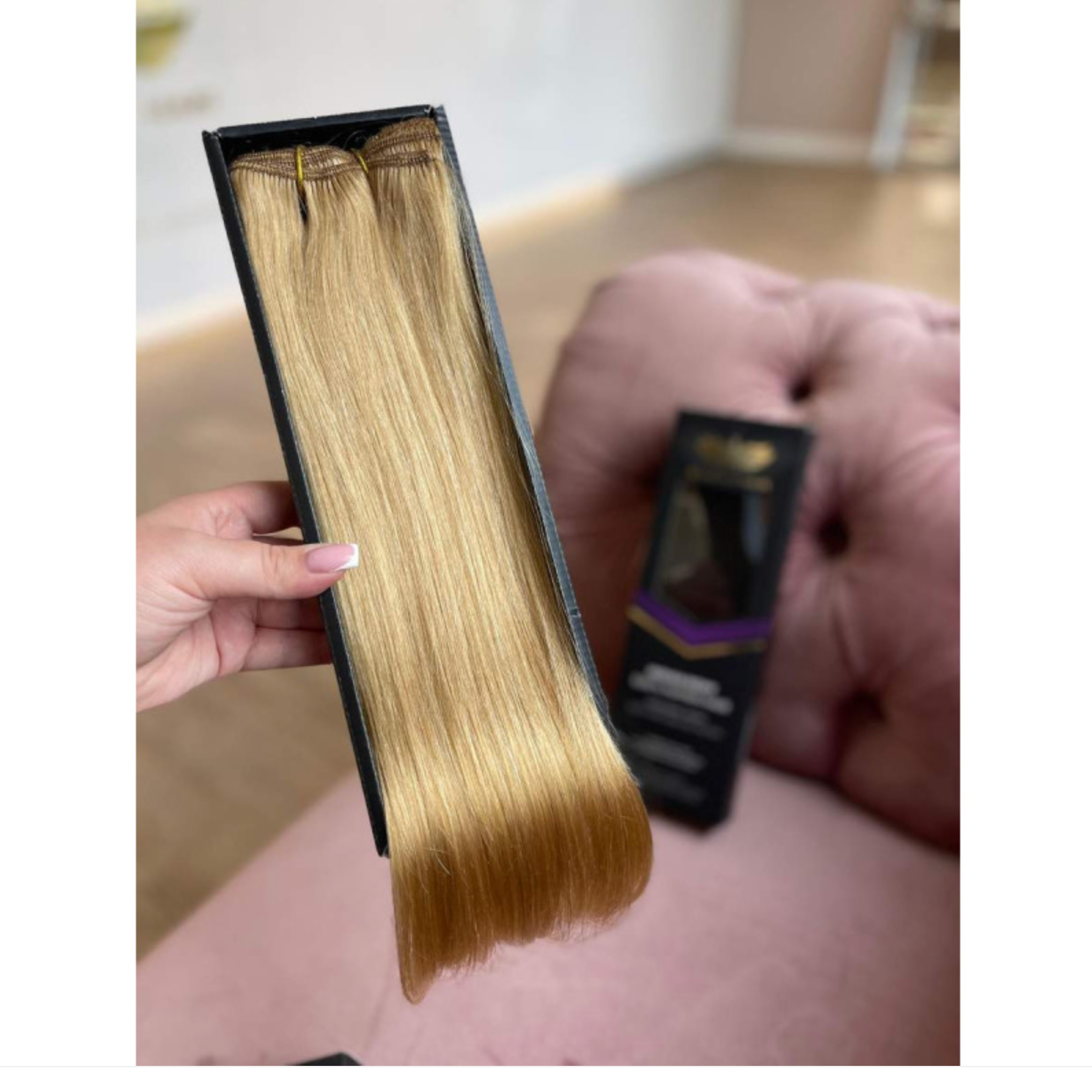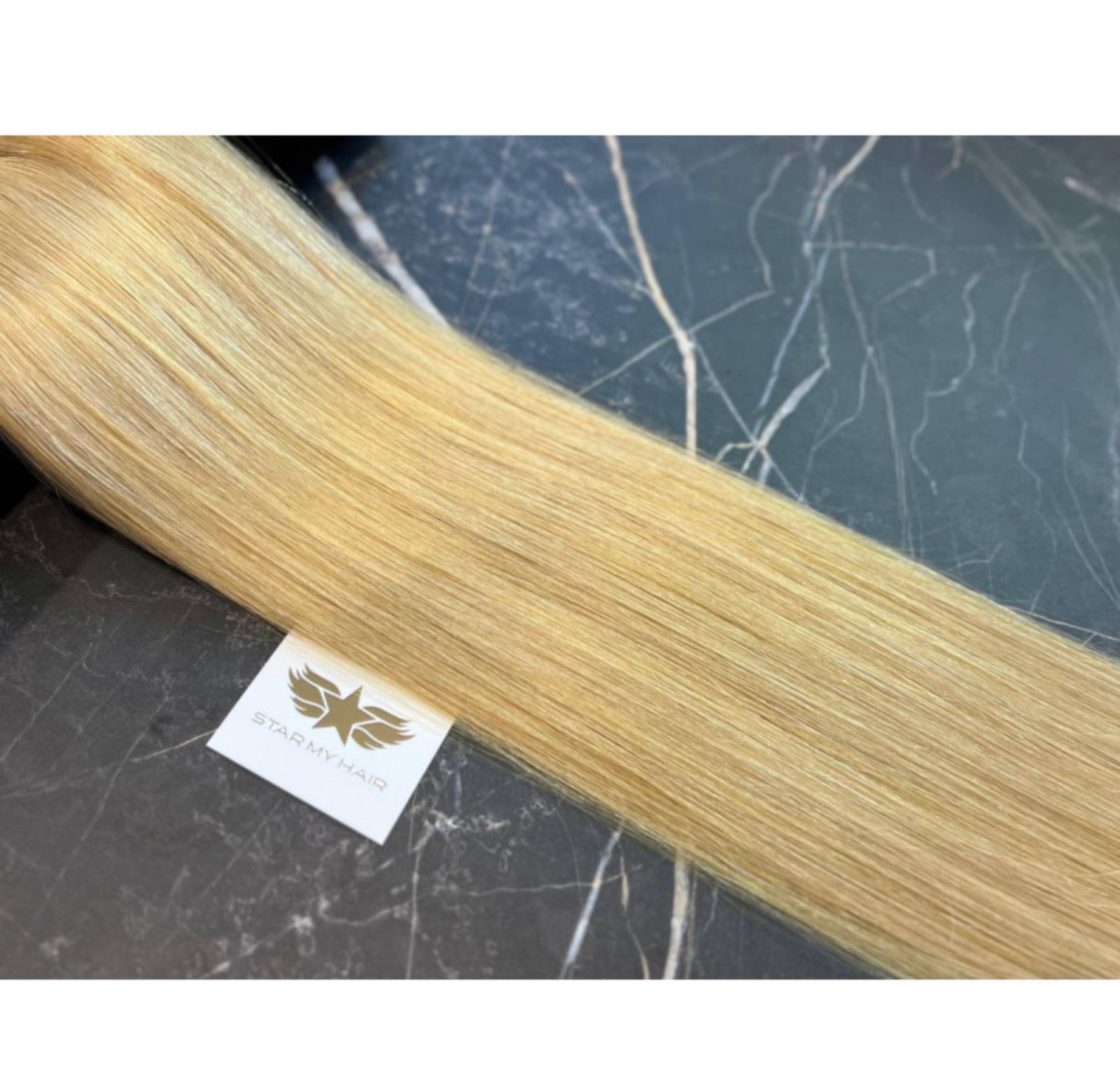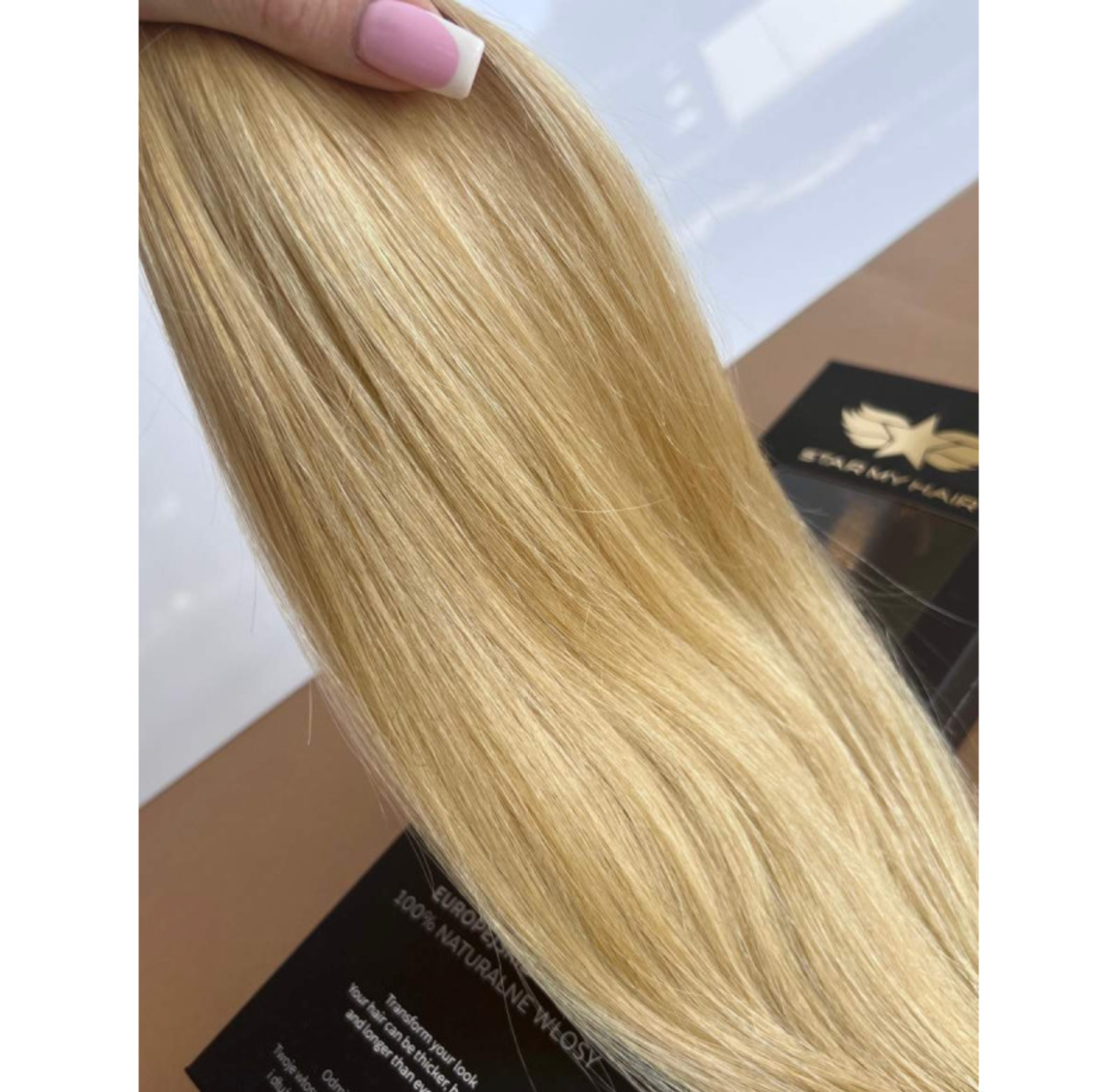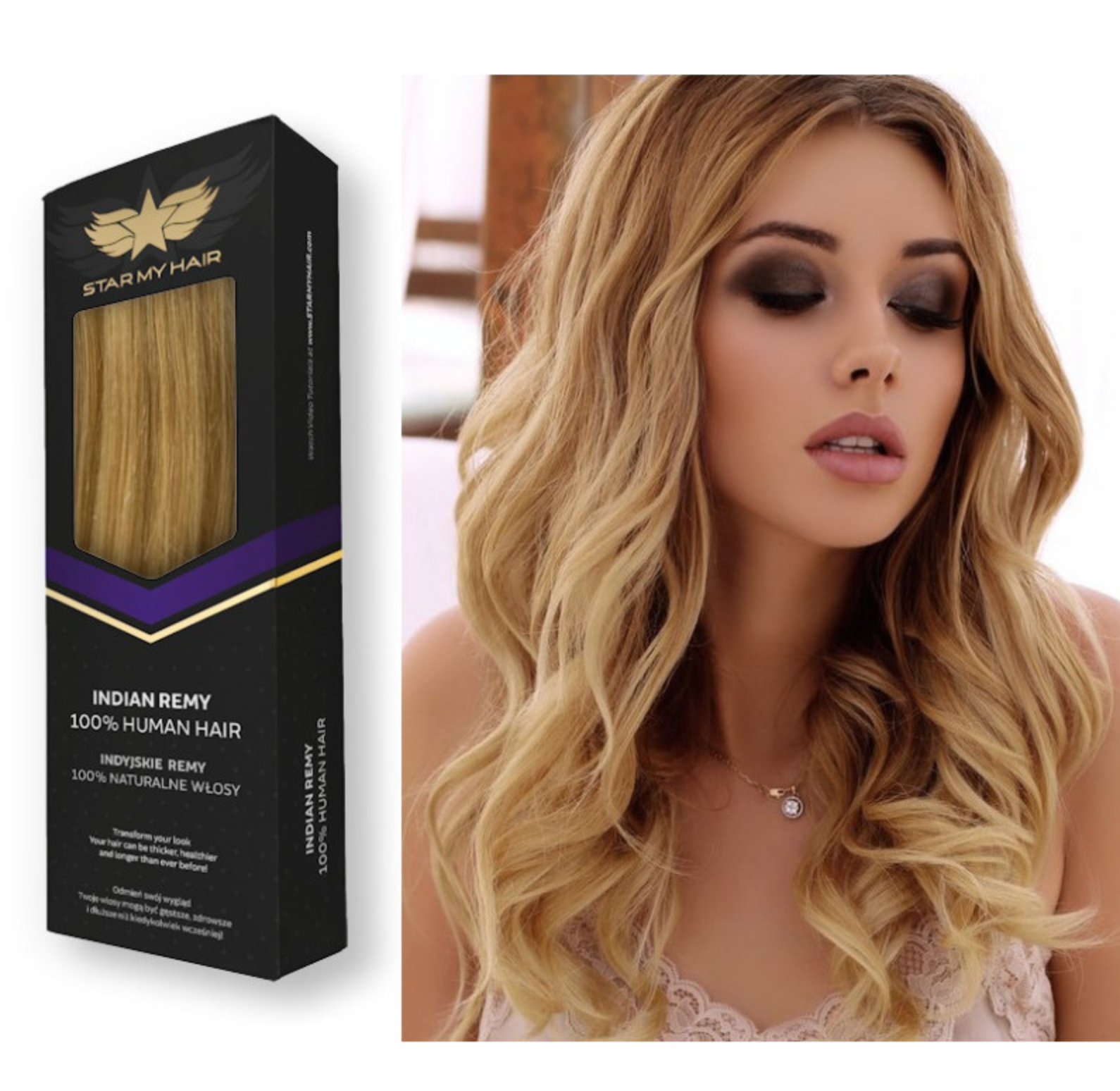 Natūralūs prisegami plaukų tresai smėlio blondinės atspalvio, 18 nr.