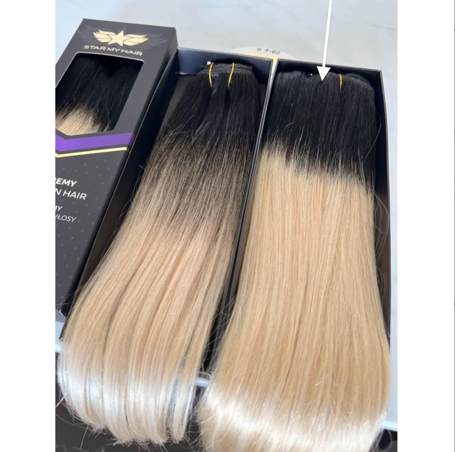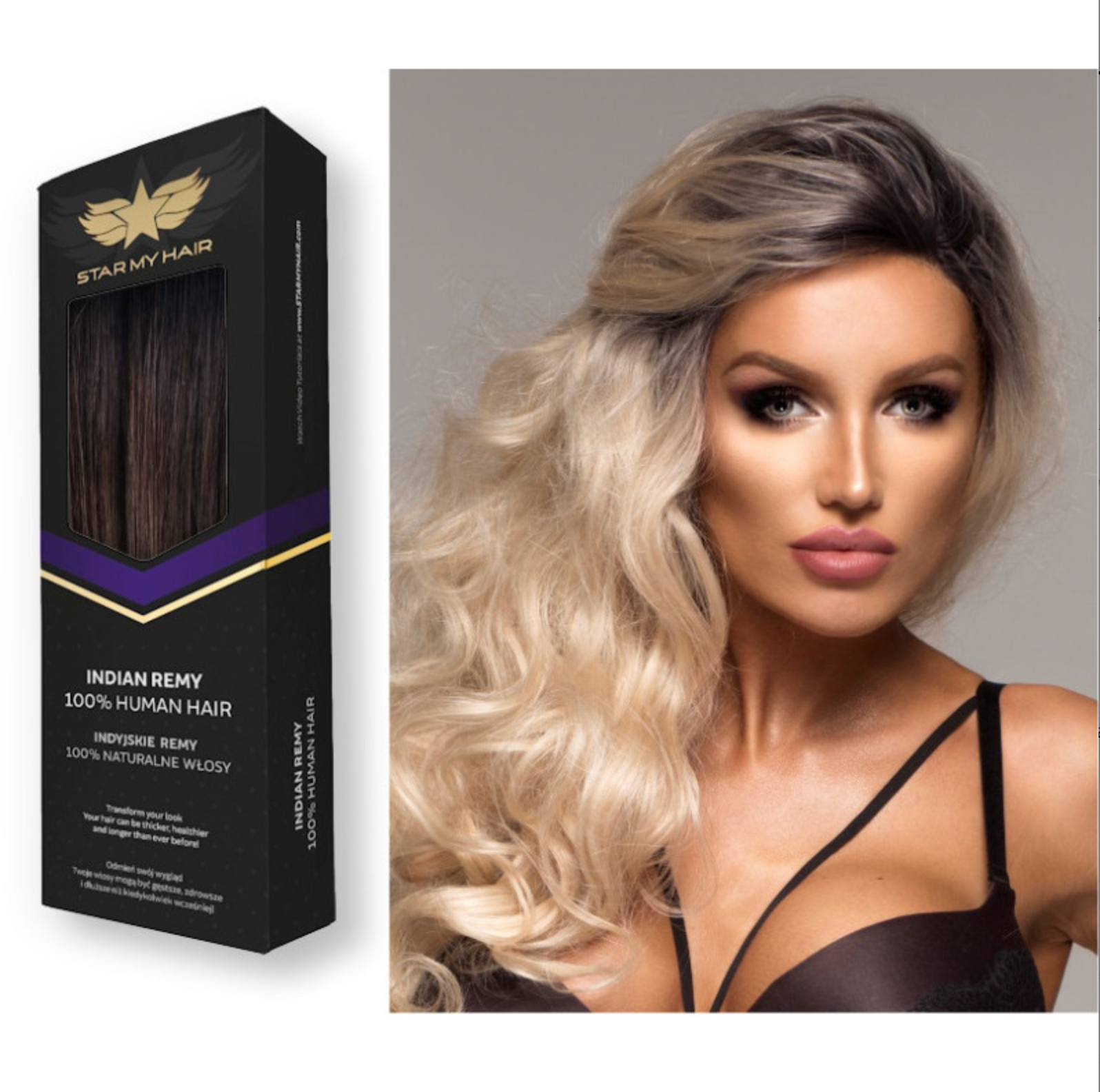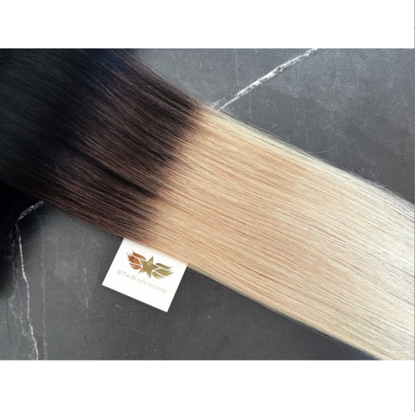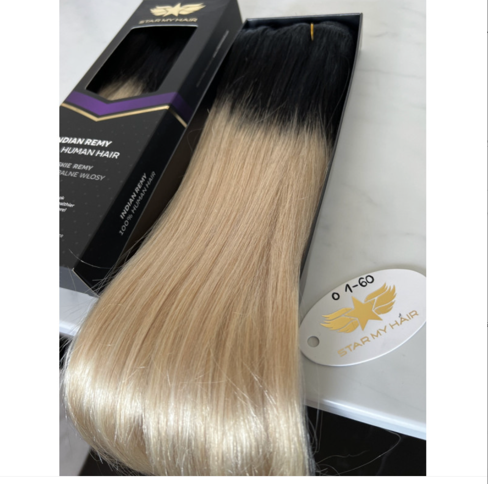 Natūralūs prisegami plaukų tresai su ombre perėjimu iš tamsiai rudos į baltą atspalvį, O 1-60 nr.