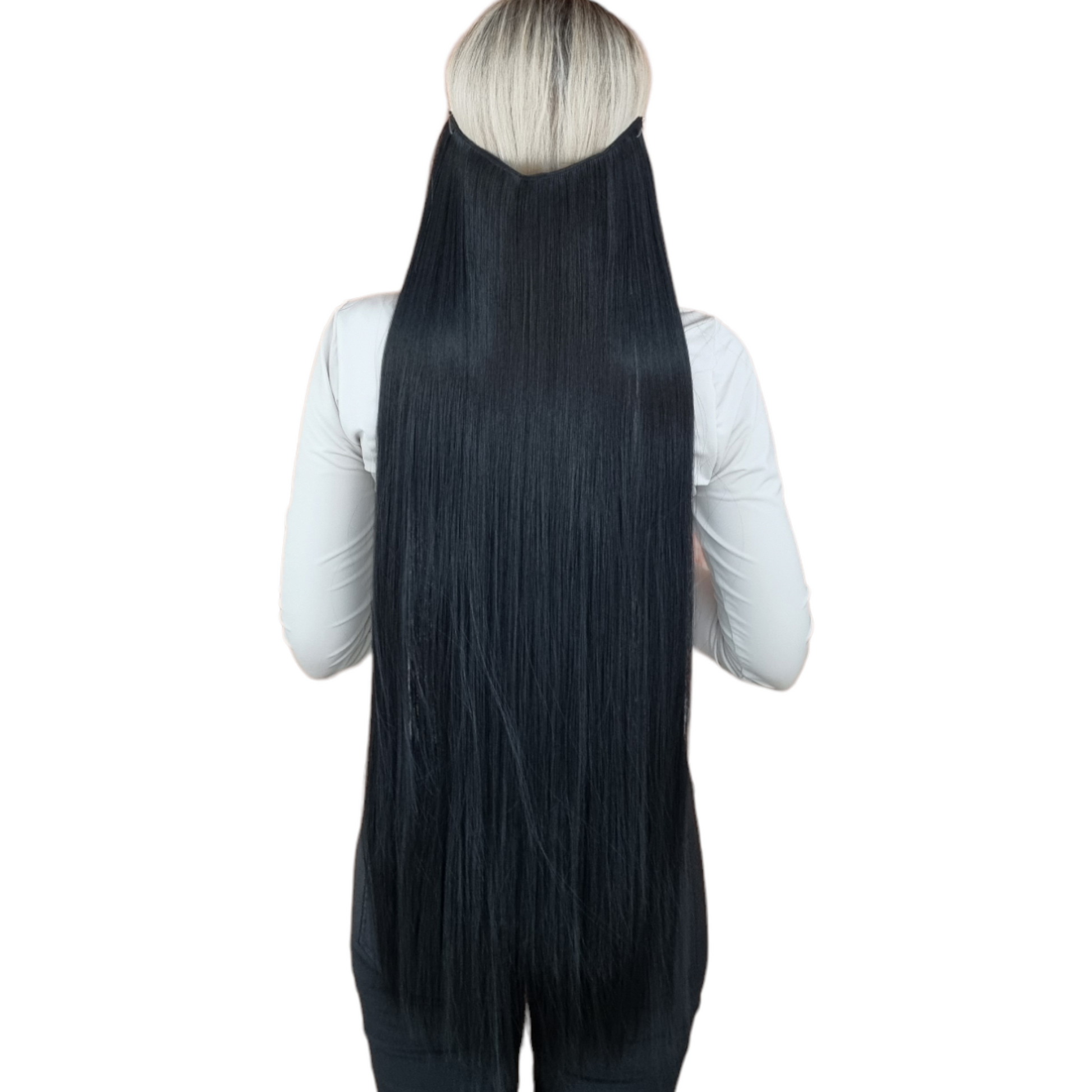 Palaidi plaukų tresai su gumyte juodos spalvos 80 cm, 110 g. 1B nr.
