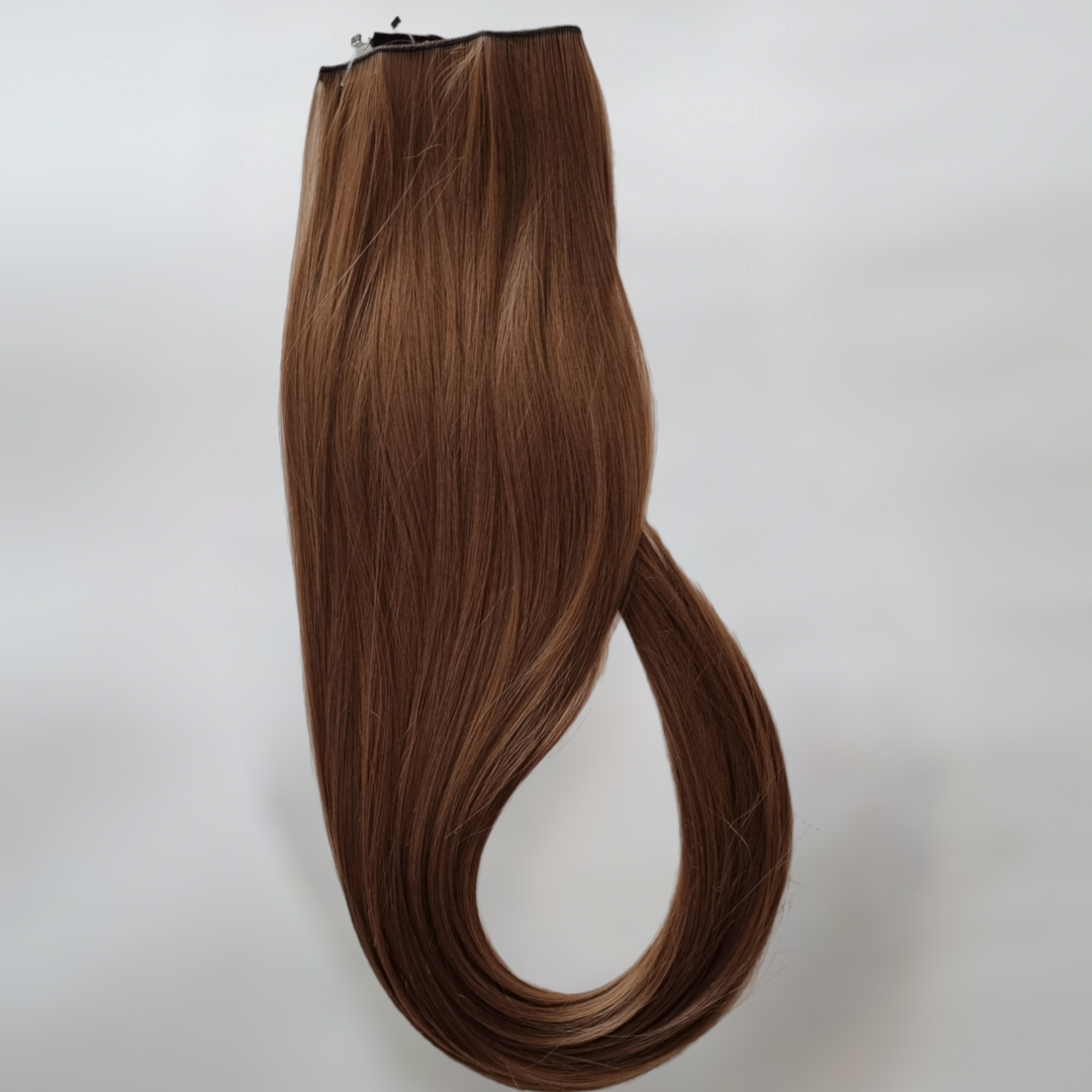 Palaidi plaukų tresai su gumyte rudos spalvos 80 cm, 110 g. 12 nr.