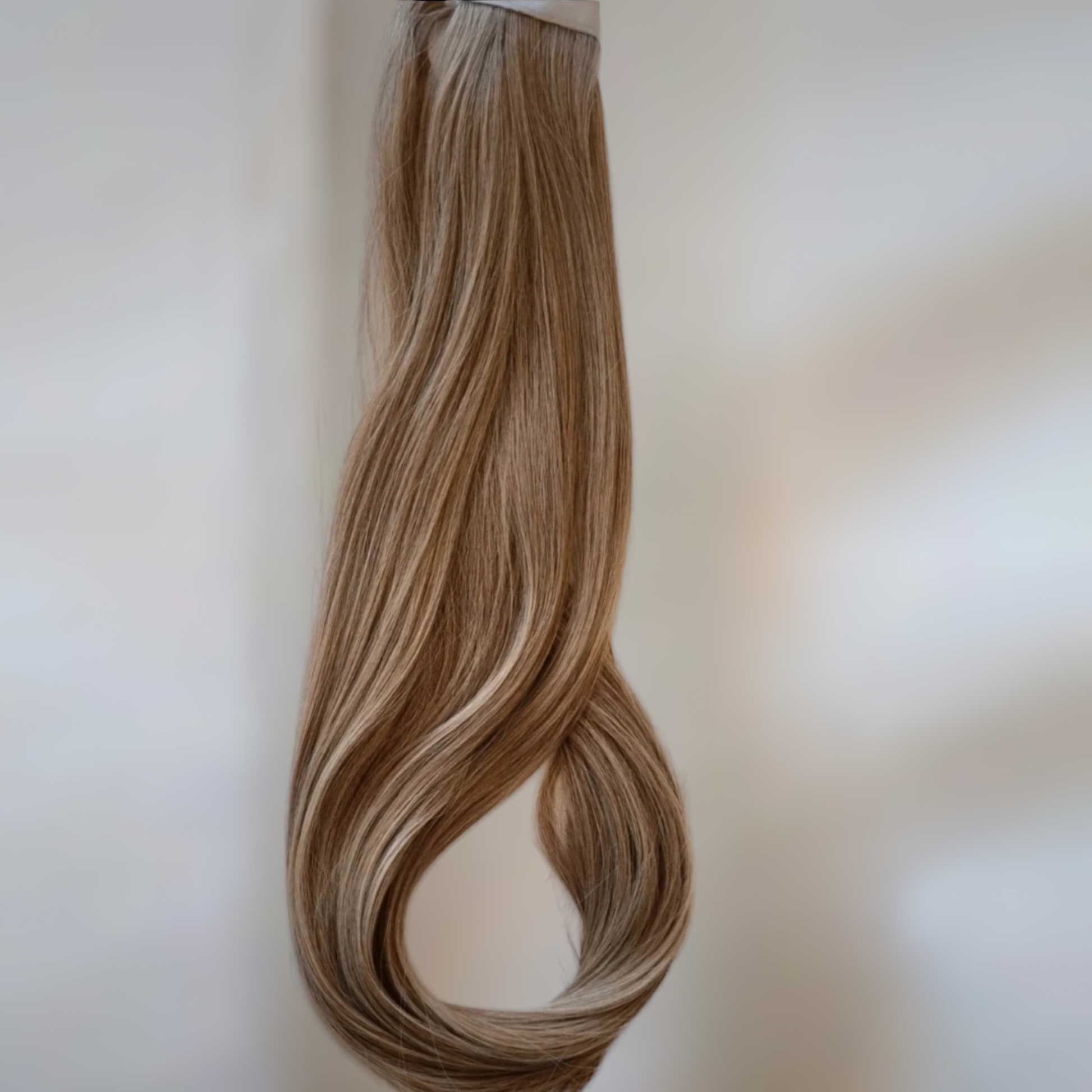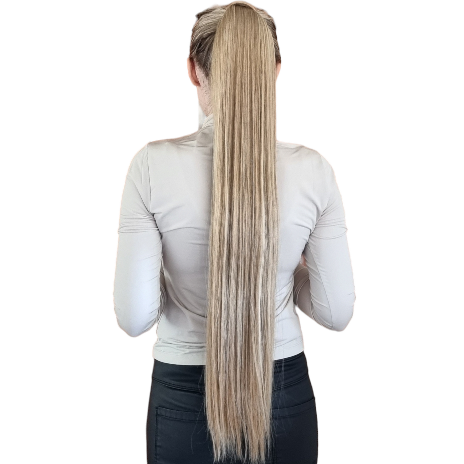 Plaukų uodega šviesiai rudos spalvos su šviesiomis, smulkiomis sruogelėmis 85 cm, 100 g, 27-613 nr.