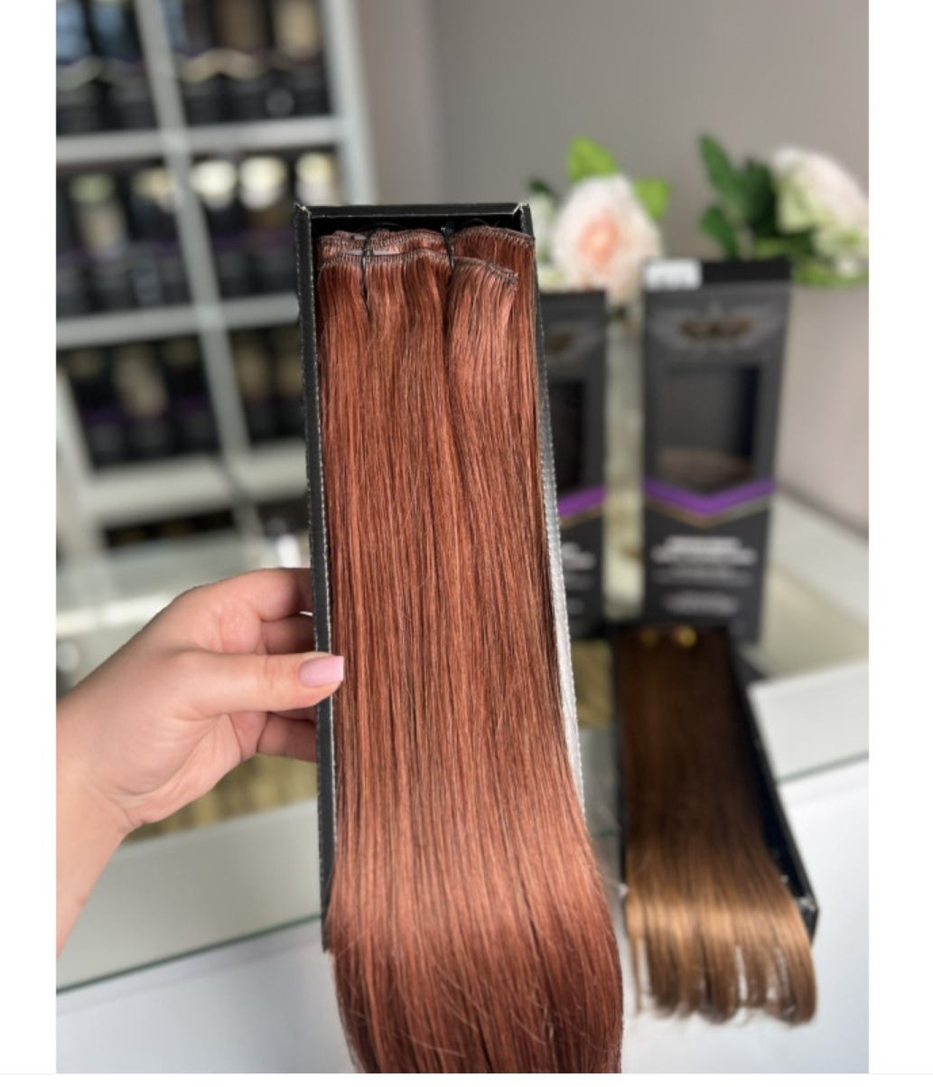 Prisegami natūralių plaukų tresai – rausvai ruda (33)