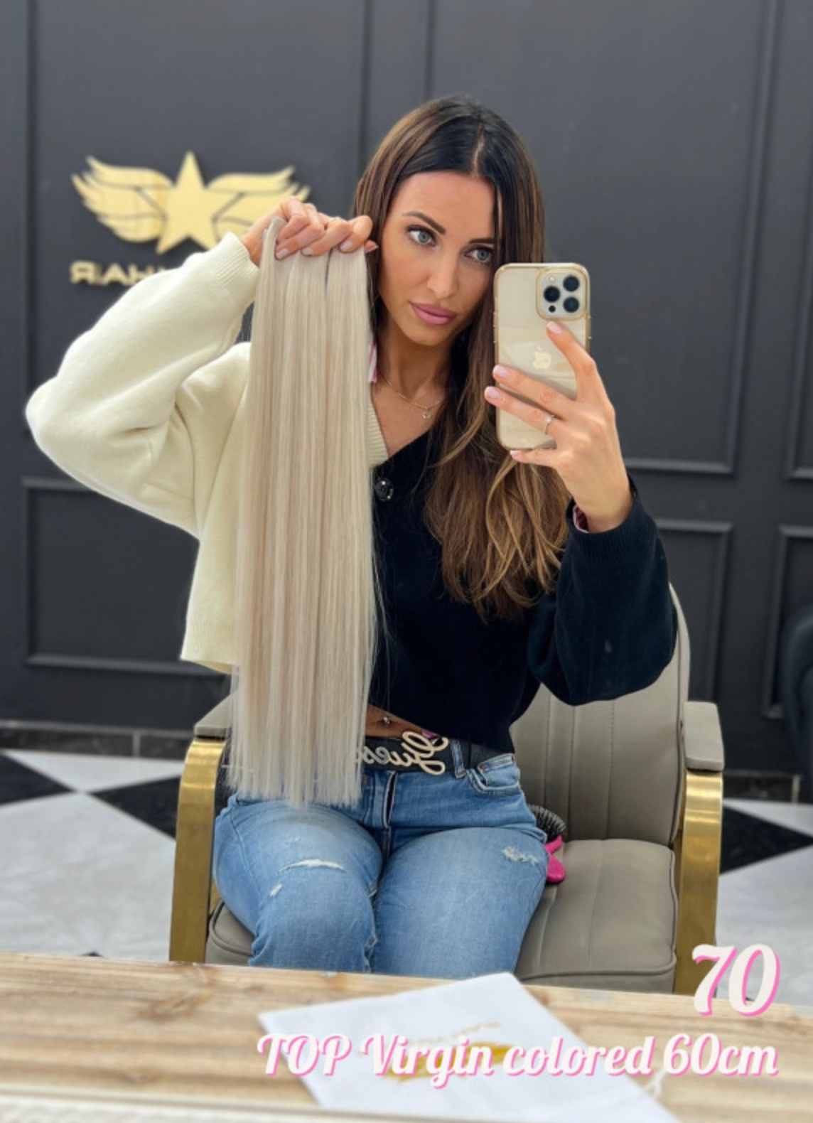 TOP Virgin Colored linija yra labai aukštos kokybės plaukai. Gaminimui naudojami tik natūralūs plaukai jaunų merginų, kurie niekada nebuvo šviesinami, dažomi ar chemiškai apdoroti – tai sveikiausi ir gražiausi plaukai. Tada, gamybos proceso metu, plaukai yra labai švelniai dažomi, naudojant specialius, švelnius dažymo produktus per kelias dienas, kad būtų išvengta plaukų struktūros pažeidimo ir kad plaukai išliktų kuo ilgiau.