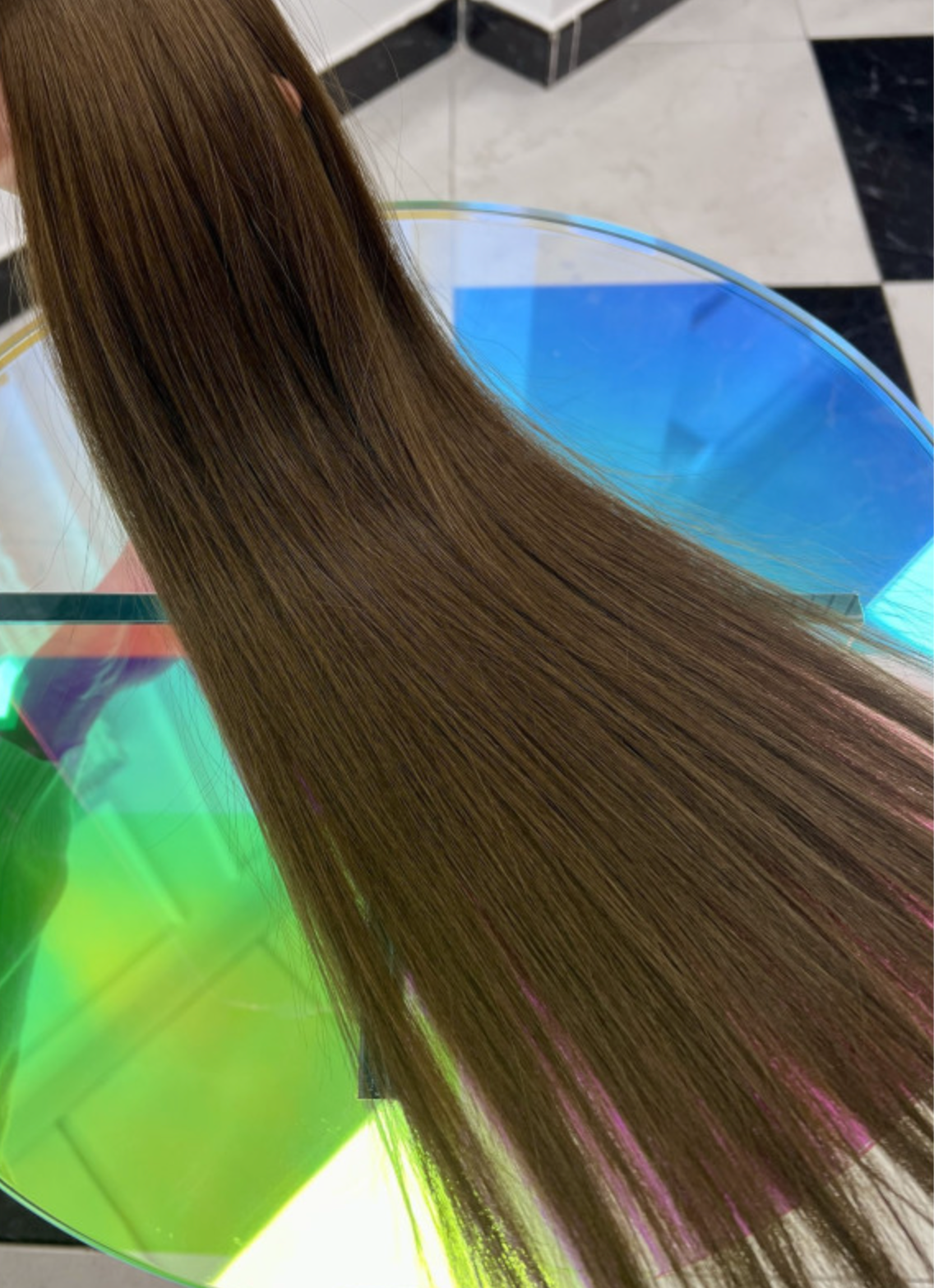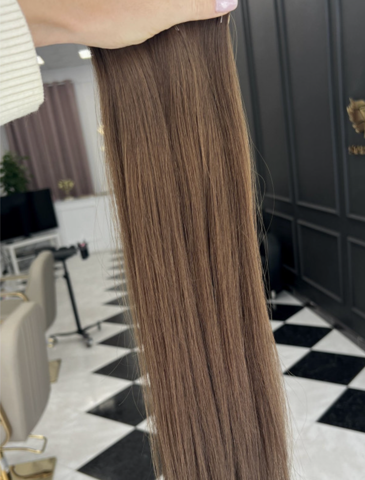 Plaukai įprastai yra ilgesni 2-3 cm. Plaukai turi storus galus, tačiau paskutiniai „papildomi“ centimetrai nėra nukirpti tiesiai, kad būtų lengviau dirbti su stilistu ir kad nesusidarytų nepageidaujami „iškarpymai“ po sruogų uždėjimo. Po plaukų uždėjimo paskutiniai 2-3 cm turėtų būti švelniai apkarpyti, kad būtų pasiektas tobulas storos plaukų linijos efektas.